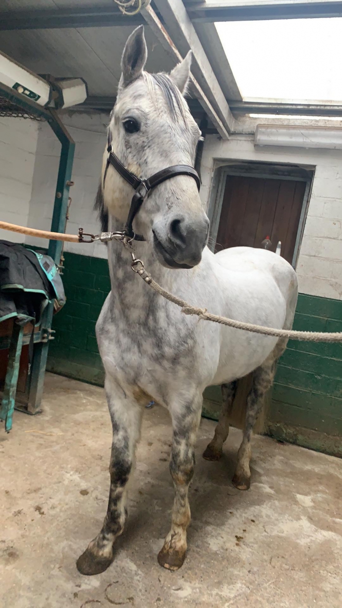 Prins is een lieve schimmelpony van 9jaar. Hij meet 1m55, maar toont groter omwille van zijn breedte.