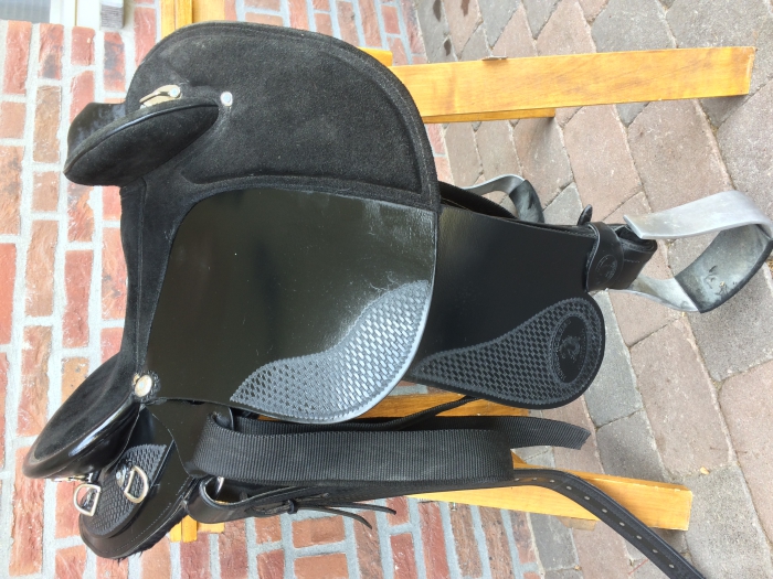 Compleet met speciale pad, aluminium stijgbeugels en leren fenders, back cinch en singel met latigo systeem (waardoor aansingelen voor het paard traploos kan en prettiger is).