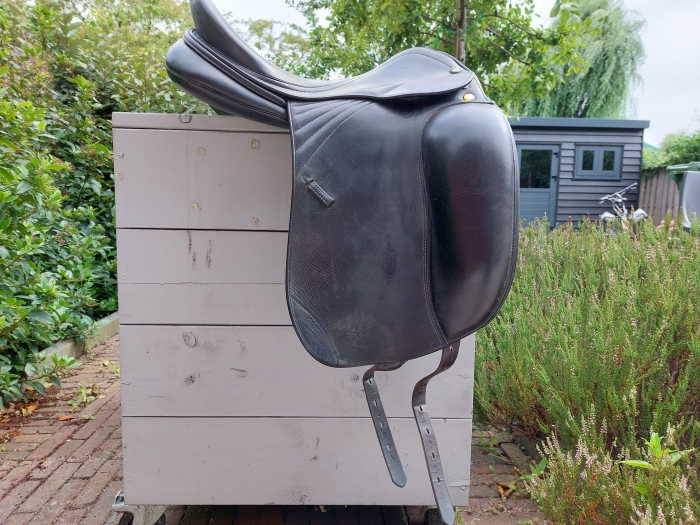 Prestige Milan Dressuurzadel te koop ivm blessure paard. Maat 17, boommaat 33 Zadel heeft gebruik..